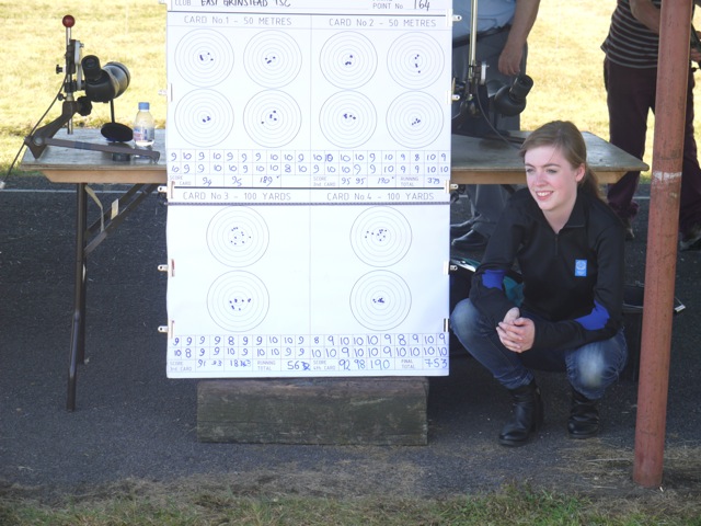 But the real star of the show was the other first-timer, 19 year-old Laura Meyers. Shooting in D class, she had extremely limited experience before coming to Bisley. She finished in 39th place (ex 57 entries) in the weekend aggregate shot over the first 2 days. She very rapidly got up to speed, rising to 9th place in D class by Thursday. Laura then found herself thrust into the Sussex County Women's team - undaunted, she shot superbly and thus helped the team to second place in the County Championship.